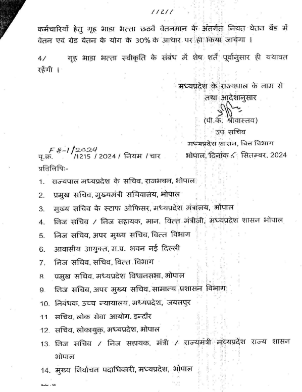 मध्य प्रदेश के साढ़े 5 लाख कर्मचारी हाउस अलाउंस बढ़ाने के लिए पिछले कई सालों से मांग कर रहे हैं। वित्त विभाग ने सिर्फ दिल्ली और मुंबई में रहने वाले अधिकारियों का हाउस अलाउंस बढ़ाया है। इन कर्मचारियों को छठवें वेतनमान के तहत 30% वेतन के आधार पर हाउस अलाउंस मिलेगा।