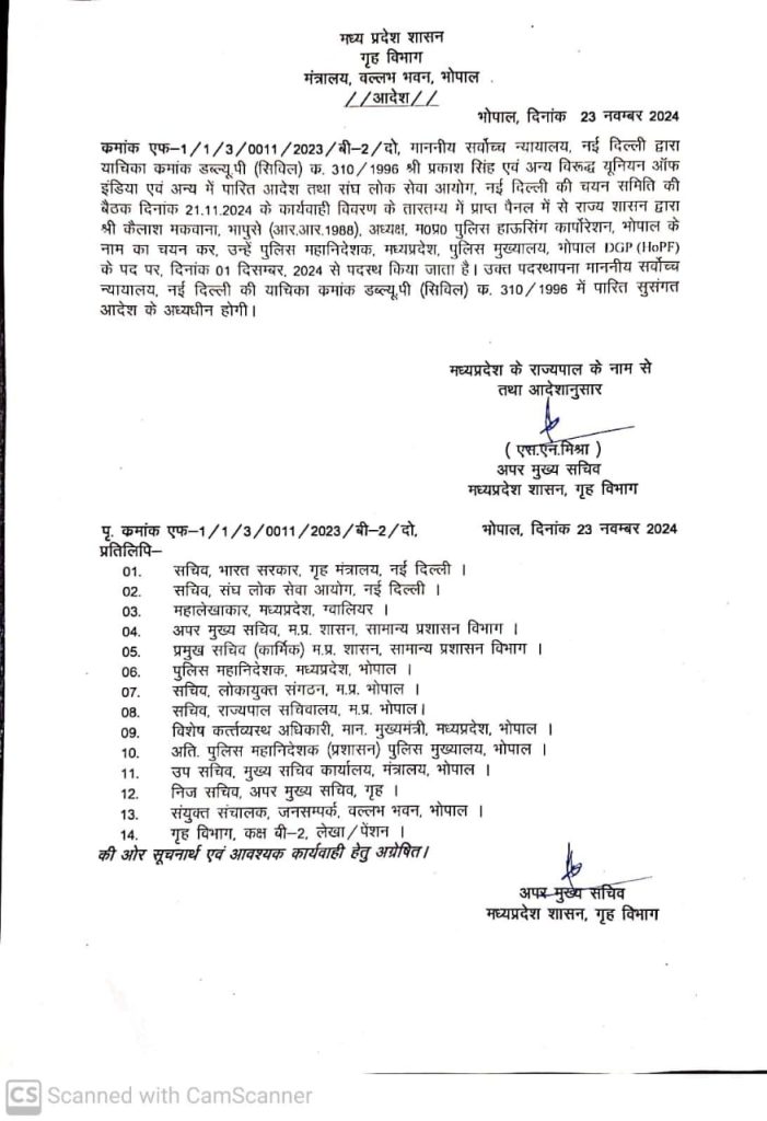 शब्बीर अहमद, भोपाल। मध्य प्रदेश को नया डीजीपी मिल गया है। डीजीपी सुधीर सक्सेना के रिटायर होने के बाद कैलाश मकवाना को जिम्मेदारी दी गई है। 1 दिसंबर को कैलाश प्रदेश के नए डीजीपी की कमान संभालेंगे। गृह विभाग ने शनिवार देर रात आदेश जारी कर दिया है।