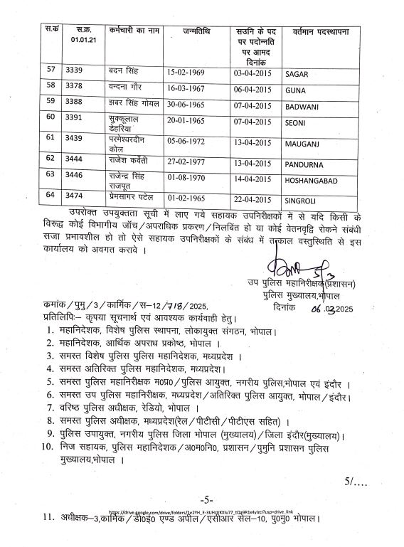 शब्बीर अहमद, भोपाल। होली (Holi 2025) त्योहार से पहले मध्य प्रदेश (Madhya Pradesh) के पुलिसकर्मियों को बड़ा तोहफा मिला हैं। प्रदेश सरकार ने थोक में पुलिसकर्मियों का प्रमोशन (MP Police Promotion) किया है। 64 एएसआई (ASI) को एसआई (SI) बनाया गया है। इस संबंध में पुलिस मुख्यालय (Police Headquarters) ने आदेश जारी कर दिया है।