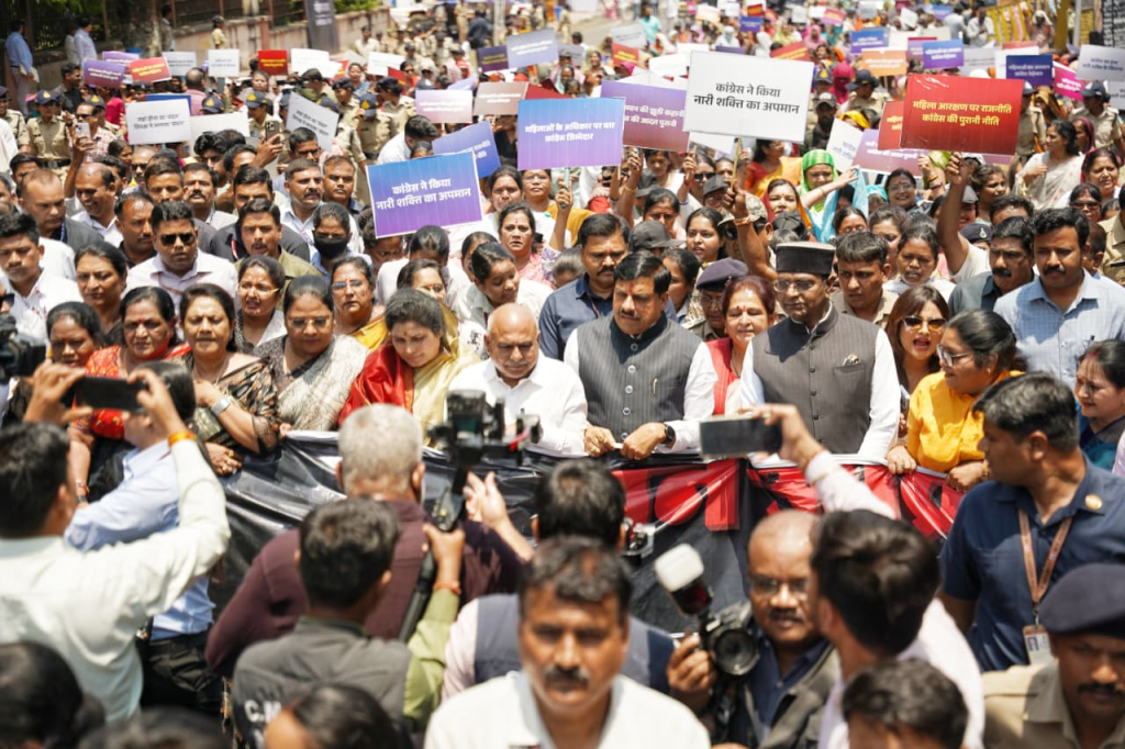 ‘आज मैंने सूर्य से बस जरा सा यूं कहा, आपके साम्राज्य में इतना अंधेरा क्यूं रहा?, तमतमा कर वह दहाड़ा- मैं अकेला क्या करूं? संग्राम यह घनघोर है, कुछ मैं लड़ूं कुछ तुम लड़ो।’ कुछ-कुछ इसी कविता की तरह महिलाओं की लड़ाई आज राजधानी की सड़क पर दिखाई दी। मुख्यमंत्री डॉ. यादव खुद पार्टी पदाधिकारियों और महिलाओं के साथ सड़क पर उतरे। इस दौरान गांव-गांव से हजारों महिलाएं भी यहां पहुंचीं। उन्होंने अपने हाथों में कई तरह के स्लोगन लिखे पोस्टर लिए हुए थे। विख्यात गायिका अंबिका जैन अंबर ने भी मंच से महिलाओं को अपने अधिकारियों के लिए जागरूक किया।