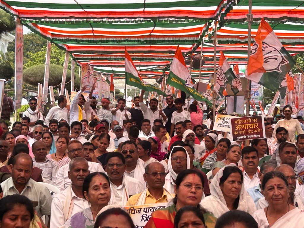 लक्षिका साहू, रायपुर। छत्तीसगढ़ में बढ़ते अपराध के खिलाफ कांग्रेस ने आज राजधानी रायपुर में मुख्यमंत्री निवास का घेराव के लिए कूच किया. प्रदेश कांग्रेस कमेटी (पीसीसी) अध्यक्ष दीपक बैज के नेतृत्व में आयोजित इस बड़े प्रदर्शन में प्रदेश भर से हजारों कार्यकर्ता और नेता शामिल हुए. घेराव से पहले रायपुर नगर निगम के सामने एक विशाल सभा का आयोजन किया गया, जहां वरिष्ठ नेताओं ने पिछले डेढ़ साल में प्रदेश में बढ़ते अपराध के आंकड़ों के साथ महिलाओं के खिलाफ हो रहे अत्याचार, लूट और हत्या सहित कई मुद्दों पर साय सरकार के खिलाफ हमला बोला. हालांकि सरकार के खिलाफ इस बड़े प्रदर्शन में प्रदेश प्रभारी सचिन पायलट के साथ प्रदेश कांग्रेस के सबसे बड़े नेता पूर्व मुख्यमंत्री भूपेश बघेल और टीएस सिंहदेव शामिल नहीं हुए.