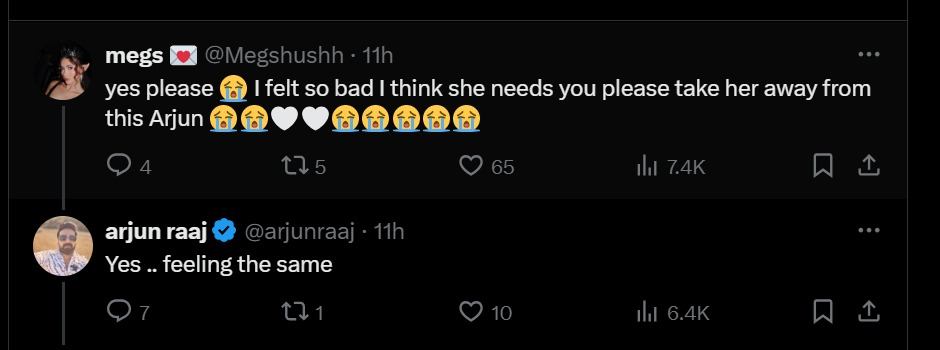 अर्जुन राज (Arjun Raj) के इस पोस्ट की कई लोगों ने सोशल मीडिया पर टिप्पणी की है कि कैसे उनका प्यार और प्रोत्साहन परिवार के महत्व की याद दिलाता है, खासकर बिग बॉस के घर जैसे उच्च तनाव वाले, अलग-थलग माहौल में. एक प्रशंसक ने अर्जुन की पोस्ट पर टिप्पणी की और कहा, “मुझे लगता है कि उसे आपकी ज़रूरत है, कृपया उसे इस अर्जुन से दूर ले जाएं” जिस पर उसने जवाब दिया “हां..ऐसा ही महसूस हो रहा है.” Read More – Bhool Bhulaiyaa 3 का नया पोस्टर आया सामने, दीवाली पर खुलेगा तंत्र और मंत्र के साथ बंधा दरवाजा …