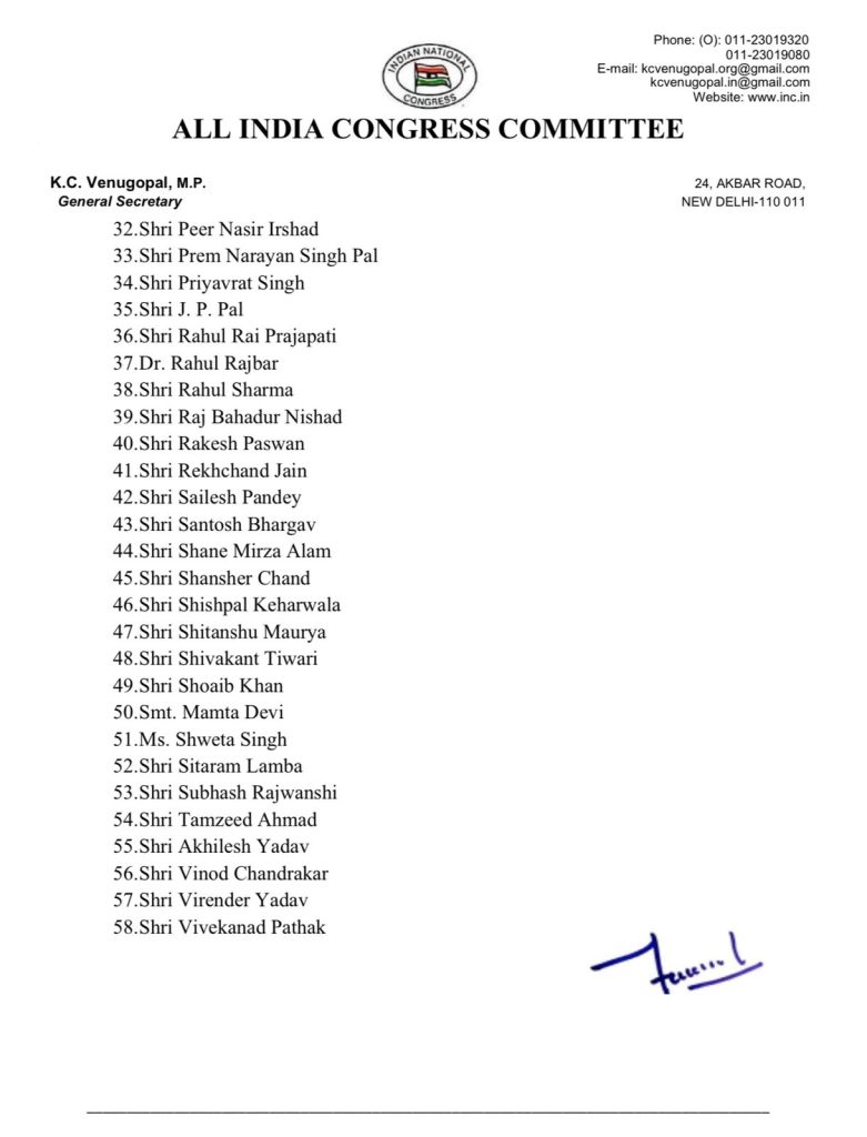 कांग्रेस महासचिव के सी वेणुगोपाल ने ऑब्जर्वर्स की सूची जारी की है। इसके मुताबिक, मध्य प्रदेश विधान सभा के पूर्व सदस्य प्रियव्रत सिंह और भोपाल विधायक आरिफ मसूद, विधायक पंकज उपाध्याय और अनुपमा आचार्य को जिम्मेदारी सौंपी गई है। वहीं छत्तीसगढ़ से पूर्व खाद्य मंत्री अमरजीत भगत, पूर्व विधायक शैलेश पांडेय, संगठन से जुड़े दीपक मिश्रा और वरिष्ठ नेता भुवनेश्वर बघेल का नाम शामिल है।