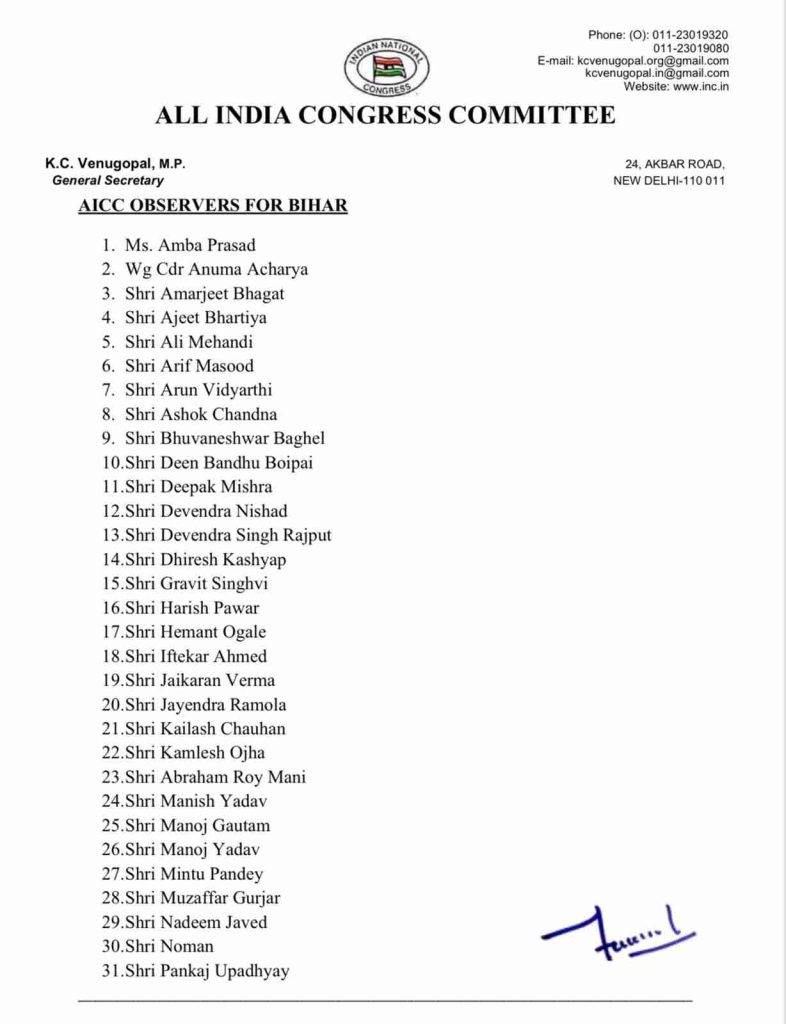 गौरतलब है कि कांग्रेस बिहार में महागठबंधन का हिस्सा है। ऐसे में आगामी चुनाव में सीटों के तालमेल, उम्मीदवारों के चयन और प्रचार रणनीति के निर्धारण में इन पर्यवेक्षकों की भूमिका बेहद अहम होगी। पार्टी ने देश भर से अनुभवी नेताओं को शामिल कर क्षेत्रीय संतुलन भी साधा है।