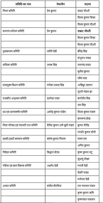 विधानसभा की कार्यप्रणाली को दिशा देने वाली सबसे प्रभावशाली नियम समिति की कमान स्वयं स्पीकर प्रेम कुमार संभालेंगे। इस हाई-प्रोफाइल समिति में बिहार के दोनों उपमुख्यमंत्री सम्राट चौधरी और विजय कुमार सिन्हा के साथ-साथ संसदीय कार्य मंत्री विजय कुमार चौधरी को सदस्य बनाया गया है। यही टीम सामान्य प्रयोजन समिति का भी कार्यभार देखेगी, जो सदन के नीतिगत निर्णयों में निर्णायक भूमिका निभाती है।