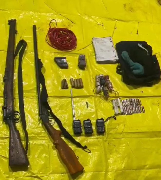 मुठभेड़ के बाद हथियार और विस्फोटक बरामद