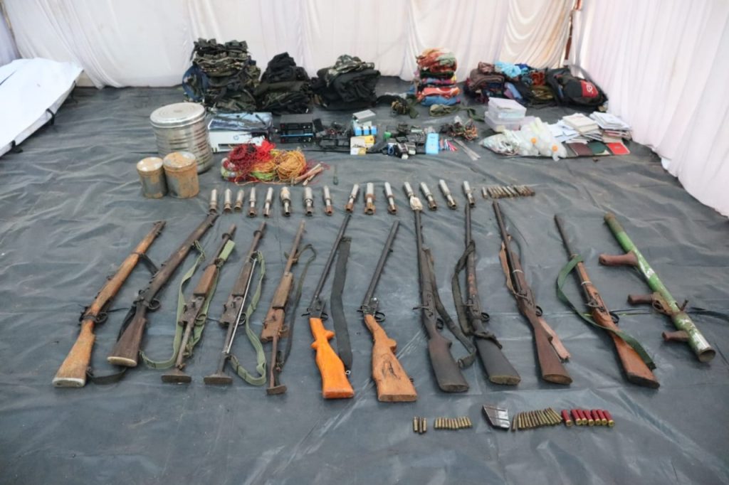 मुठभेड़ के बाद सुरक्षा बलों ने माओवादियों के कैंप को ध्वस्त किया और भारी मात्रा में हथियार और माओवादी सामग्री बरामद की. बरामद किए गए हथियारों में दो 303 रायफल, एक 12 बोर रायफल, एक 315 बोर रायफल, 1 बटालियन टेक्टिनकल टीम द्वारा निर्मित राकेट लॉन्चर और 3 बीजीएल लॉन्चर शामिल हैं. इसके अलावा औजार बनाने के उपकरण, विस्फोटक सामग्री और माओवादी साहित्य भी बरामद किए गए.