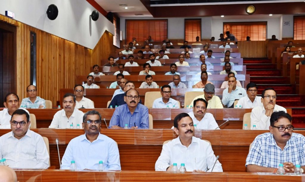 रिसोर्स पर्सन के रूप में भारतीय मानक ब्यूरो के विशेषज्ञ सर्वश्री फालेन्द्र कुमार, राजेश कुमार दास, देवेन्द्र सिंह धपोला, आर.पी. देवांगन, डॉ. एन. मुरली मोहन और डॉ. मयूर जे. कपाड़िया लोक स्वास्थ्य यांत्रिकी विभाग के इंजीनियरों को जल प्रदाय प्रणाली और रेन वाटर हार्वेस्टिंग से संबंधित नए मानकों और मापदंडों की जानकारी दे रहे हैं।