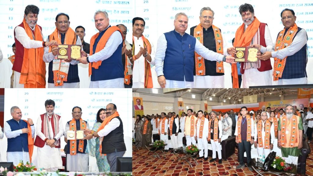 नितिन नामदेव, रायपुर। भारतीय जनता पार्टी के “संगठन महापर्व: सदस्यता अभियान” की सफलता के उपलक्ष्य में शनिवार को नवा रायपुर स्थित मुख्यमंत्री निवास में भव्य उत्कृष्ट सदस्यता सम्मान समारोह का आयोजन किया गया। इस अवसर पर मुख्यमंत्री विष्णुदेव साय, प्रदेश अध्यक्ष किरण सिंह देव, क्षेत्रीय संगठन महामंत्री अजय जम्वाल और अन्य वरिष्ठ नेताओं की मौजूदगी में 200 से अधिक समर्पित कार्यकर्ताओं को सम्मानित किया गया।