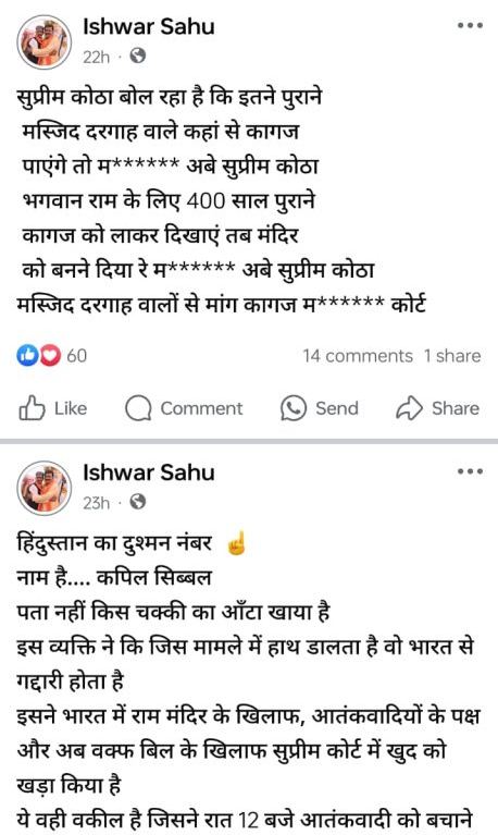 विधायक के फेसबुक पर किए गए एक के बाद एक विवादित पोस्ट: