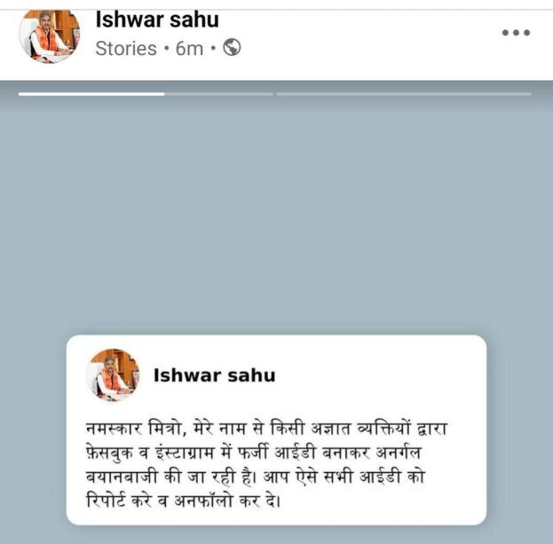 वहीं पोस्ट वायरल होने के बाद मचे बवाल के बीच विधायक साहू की सफाई भी आ गई है. उन्होंने इंस्टाग्राम में स्टोरी लगाकर कहा कि मेरे नाम से अज्ञात व्यक्ति द्वारा फेसबुक और इंस्टाग्राम में फर्जी आईडी बनाकर अनर्गल बयानबाजी की जा रही है. इसके साथ ही उन्होंने सभी से ऐसे आईडी को रिपोर्ट कर अनफॉलो करने की अपील की है.
