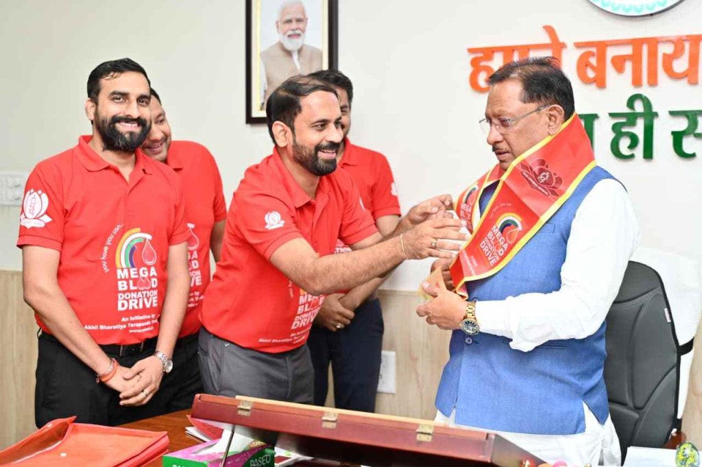 Blood donation Amrit Mahotsav 2.0: अखिल भारतीय तेरापंथ युवक परिषद की ओर से 17 सितंबर को विश्वव्यापी मेगा रक्तदान शिविर का आयोजन किया जाएगा। रक्तदान अमृत महोत्सव 2.0 के तहत छत्तीसगढ़ के सभी जिलों में भी रक्तदान शिविर आयोजित होंगे। अखिल भारतीय तेरापंथ युवक परिषद ने सीएम विष्णुदेव साय से आज मुलाकात की और रक्तदान अमृत महोत्सव 2.0 के बारे में विस्तार से जानकारी दी।