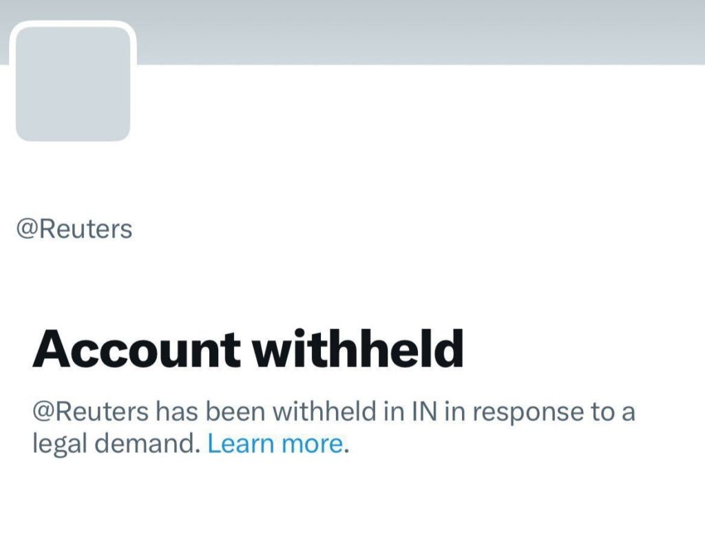 आज लोग, जब ब्रिटिश न्यूज एजेंसी रॉयटर्स का X अकाउंट एक्सेस करने की कोशिश करते हैं तो उन्हें एक नोटिस दिखाई देता है कि यह अकाउंट भारत में एक कानूनी मांग के कारण उपलब्ध नहीं है।