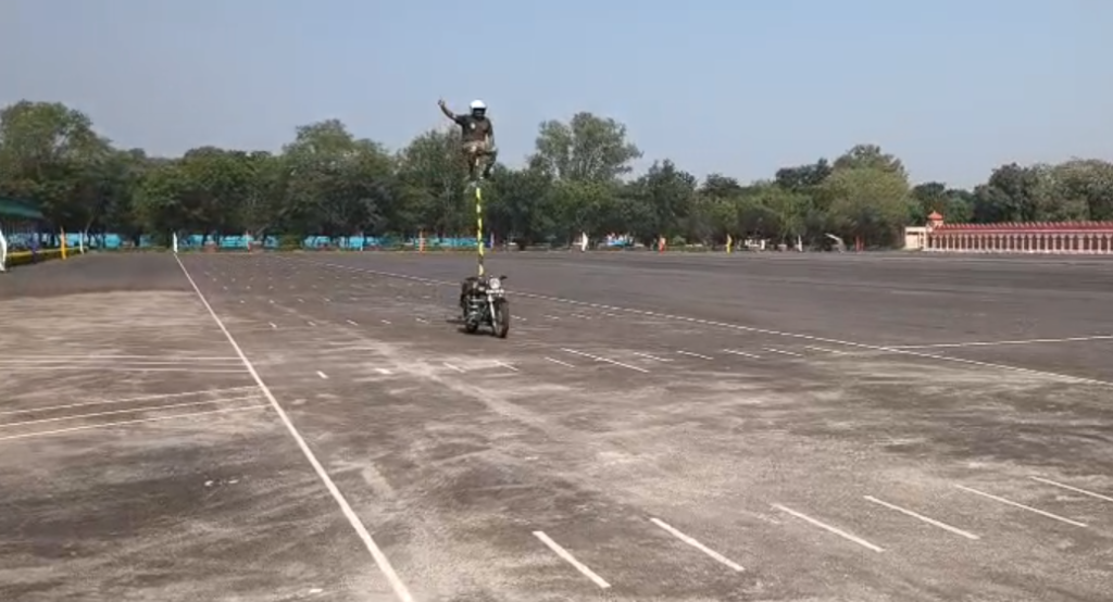 सतीश दुबे, डबरा (ग्वालियर)। टेकनपुर सीमा सुरक्षा बल अकादमी की राजपथ पर प्रदर्शन करने वाली जाबांज और सीमा भवानी बाइकर्स टीम इन दिनों नया रिकॉर्ड बनाने की तैयारी में लगी है। BSF के जवान एक-एक घंटे तक बिना रुके ग्राउंड में बाइक दौड़ाकर नया कीर्तिमान बनाने जा रहे हैं।