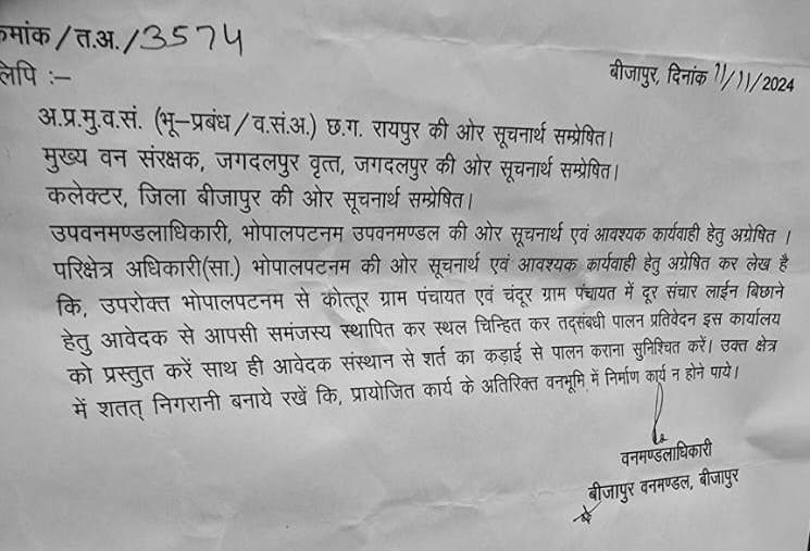 मामले पर परिक्षेत्र अधिकारी विनोद तिवारी ने बताया कि बीजापुर वन मंडलाधिकारी द्वारा जारी आदेश कॉपी हमें प्राप्त नहींं हुई है. इस कार्य की जानकारी हमें नहीं थी. सूचना मिलने के बाद मौके पर जाकर नियम विरुद्ध चल रहे कार्य को बंद करवाया गया है. इसके साथ कार्य में लगे तीनों गाड़ियों को जब्त कर कार्रवाई की गई है. सोमवार को पूरी टीम इस कार्य की जांच कर कंपनी को नोटिस जारी करेगी.