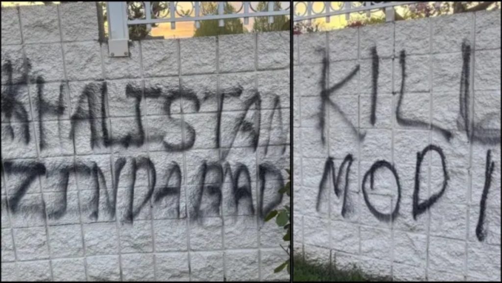 मीडिया रिपोर्ट्स के अनुसार, वैंकूवर के रॉस स्ट्रीट गुरुद्वारे पर शनिवार (19 अप्रैल, 2025) को सुबह तीन बजे हमला हुआ। इस दौरान एक ट्रक में बैठ कर आए कुछ लोगों ने गुरुद्वारे की दीवाल पर ‘किल मोदी’, ‘खालिस्तान जिंदाबाद’ समेत बाकी भारत विरोधी नारे लिखे। यह लोग इसके बाद भाग गए।