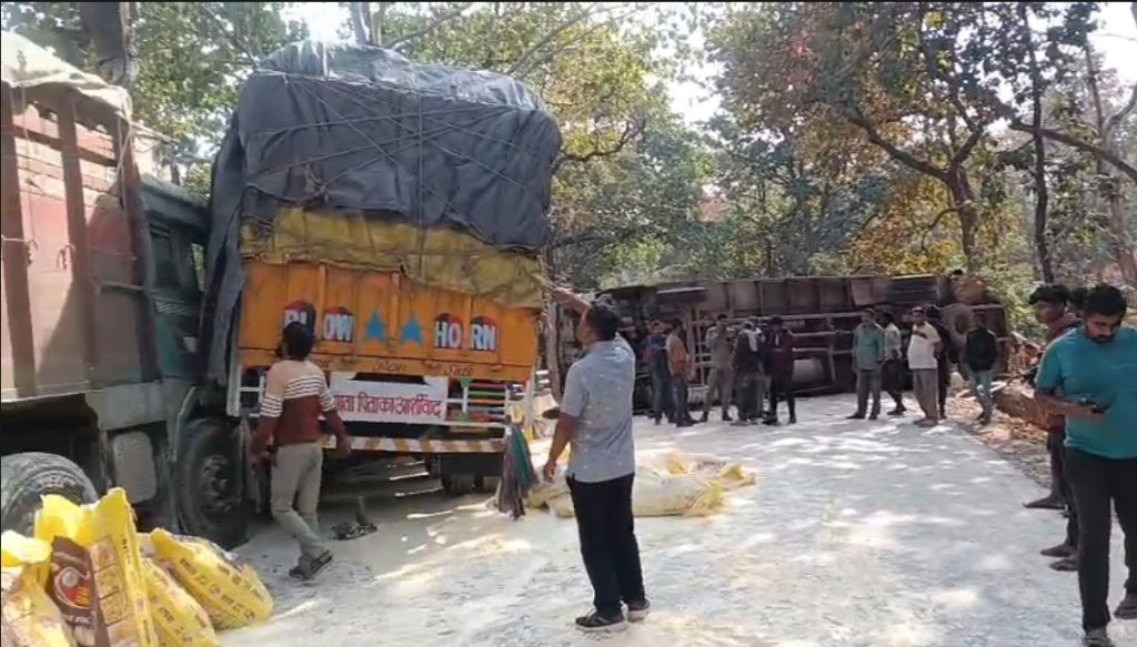 चिल्फी घाट में पलटी ट्रक, लगा लंबा जाम