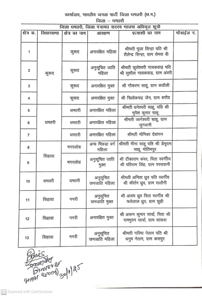 भाजपा ने जारी की जिला पंचायत सदस्य प्रत्याशियों की सूची