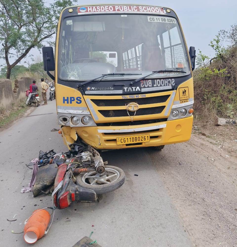 प्रशांत सिंह, जांजगीर-चांपा। छत्तीसगढ़ के जांजगीर-चांपा जिले में देवरहा मोड़ के पास एक दर्दनाक सड़क हादसा हो गया. हसदेव पब्लिक स्कूल की बस ने एक बाइक पर सवार दूधवाले को जोरदार टक्कर मार दी, जिससे वह गंभीर रूप से घायल हो गया और इलाज के दौरान उसकी मौत हो गई.