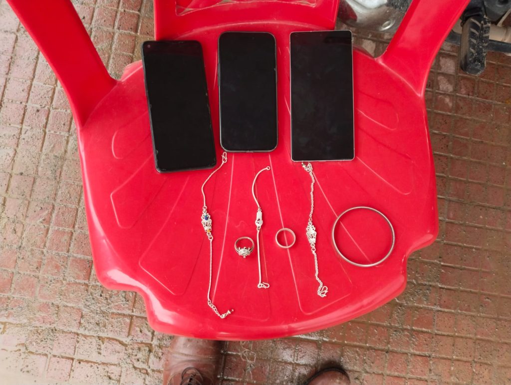 तीन चांदी की राखी, कीमत 1,500 रुपये, कुल मूल्य 1,22,000 रुपये (आरोपी लाभेश कुमार साहू से)