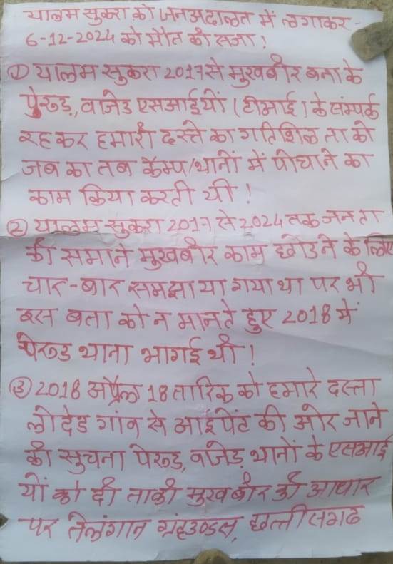 जानकारी के अनुसार, लोदेड में शनिवार देर रात नक्सलियों ने पुलिस मुखबिरी का आरोप लगाकर महिला सुकरा यालम की रस्सी से गला घोंटकर हत्या कर दी. नक्सलियों के मद्देड़ एरिया कमेटी ने हत्या की जिम्मेदारी ली है. बीते 18 नवंबर को 7 माओवादियों को तेलगांना ग्रेआउंड्स फोर्स ने मार गिराया था. इसकी मुखबिरी का आरोप महिला पर लगाया गया. बता दें कि पिछले पांच दिनों में नक्सलियों ने चार लोगों की हत्या की घटना को अंजाम दिया है. (Naxal Attack in Chhattisgarh)