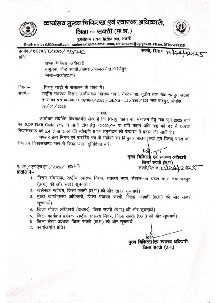 CG News : रवि गोयल, सक्ती. सक्ती में बीएमओ सूरज राठौर पर चिरायु योजना में लगी वाहनों का महीनों से भुगतान नहीं करने का आरोप है. सीएमएचओ कार्यालय से 11 अप्रैल 2025 को सभी बीएमओ को पत्र जारी कर प्रति माह 40,000 रुपए की राशि स्वीकृत कर दी गई थी. साथ ही चिरायु योजना का संचालन बीएमओ कार्यालय से करने निर्देश जारी किए गए थे. इसके बावजूद आरोप है कि सक्ती बीएमओ ने अब तक वाहन मालिकों को भुगतान नहीं किया. अब वाहन मालिक अपनी गाड़िया अस्पताल में नहीं लगा रहे हैं.