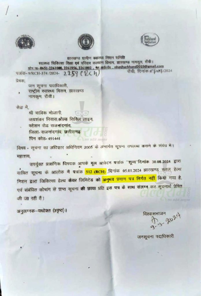 लेकिन अब जिस झारखंड के एनएचएम विभाग के अनुभव प्रमाण पत्र को उक्त कंपनी ने पुलिस विभाग को दिया है उसे लेकर इसी विभाग ने आरटीआई में जानकारी देते हुए कहा है कि इसे उन्होंने द्वारा जारी ही नहीं किया.