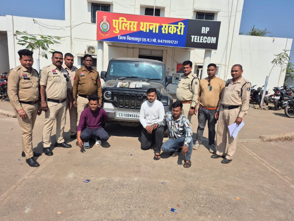बिलासपुर। शराब के नशे में तेज रफ्तार थार गाड़ी चलाते और हाथों में धारदार चाकू लहराने वाले तीन युवकों को पुलिस ने गिरफ्तार किया है। पुलिस ने आरोपियों के कब्जे से थार वाहन क्रमांक सीजी 10 बीडब्ल्यू 6664 तथा तीन धारदार चाकू जब्त किए हैं। मामला सकरी थाना क्षेत्र का है।