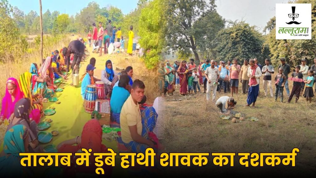CG News : रायगढ़. छत्तीसगढ़ में रायगढ़ के वन परिक्षेत्र बंगुरसिया सर्किल में हाथी शावक की डूबने से मौत के बाद ग्रामीणों ने तालाब के शुद्धिकरण और दशकर्म कार्यक्रम का आयोजन किया. ग्रामीणों ने उसकी आत्मा की शांति की कामना की. साथ ही जिस स्थान पर शावक की मृत्यु हुई उसी जगह पर मृत्युभोज करवाया. (Villagers Mourn Elephant Calf) इस दौरान वन अमले के क्षेत्रीय अधिकारी और कर्मचारी भी शामिल हुए.