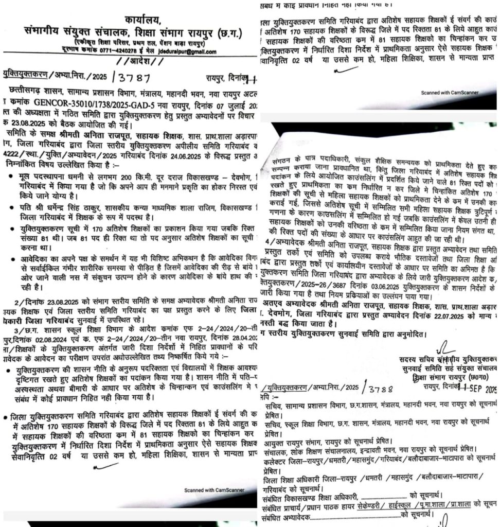 शिक्षकों ने दावा किया कि जिले में ई-सर्वाधिक में केवल 81 पद रिक्त थे, जबकि 171 शिक्षक अतिशेष थे, जिसमें 75 महिलाएं और 95 पुरुष शामिल थे. महिलाओं को काउंसिलिंग में प्राथमिकता नहीं दी गई और वरिष्ठ महिलाओं को 200 किमी दूर फिंगेश्वर से देवभोग भेजा गया. सुनवाई समिति ने इन बिंदुओं को जायज मानते हुए जिला स्तर की प्रक्रिया को गलत ठहराया. शिक्षकों का कहना है कि संयुक्त संचालक कार्यालय में सुनवाई के नाम पर व्यक्तिगत पेशी को ज्यादा तवज्जो दी गई और नीति से हटकर अर्थनीति को प्राथमिकता दी गई.