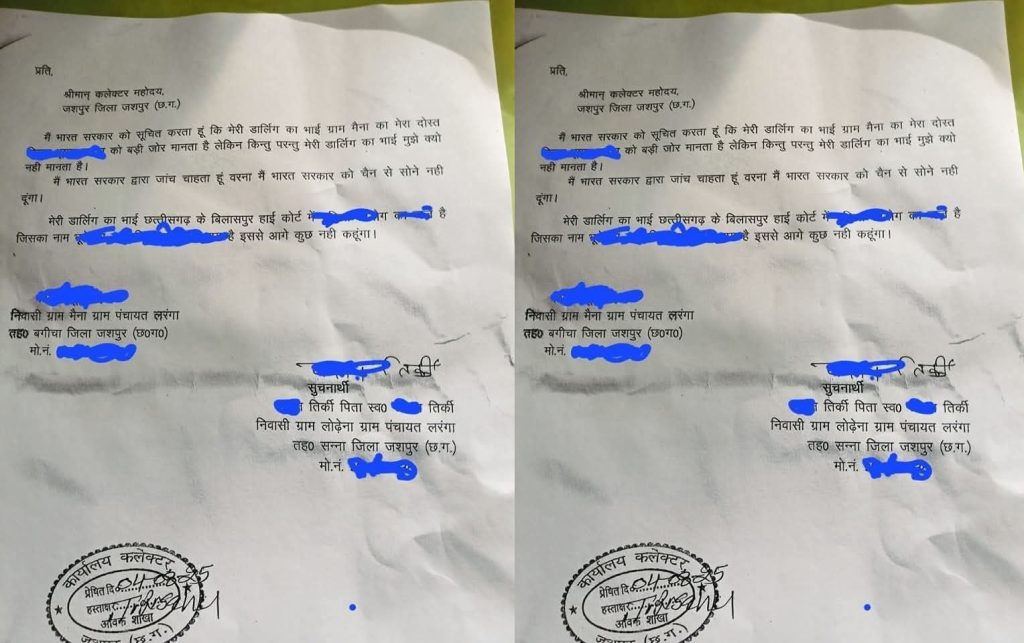 CG News: प्रतीक चौहान. रायपुर/जशपुर. यू तो कलेक्ट्रेट में रोजाना सैकड़ों शिकायतें पहुंचती होगी. लेकिन वे मीडिया की सुर्खिया नहीं बन जाती है. लेकिन सोशल मीडिया में जशपुर कलेक्टर के पास एक शिकायत पहुंची है, जो सोशल मीडिया में तेजी से वायरल हो रही है. जो शिकायत पत्र वायरल हो रहा है उसमें बकायदा कार्यालय कलेक्टर की मुहर भी लगी है.