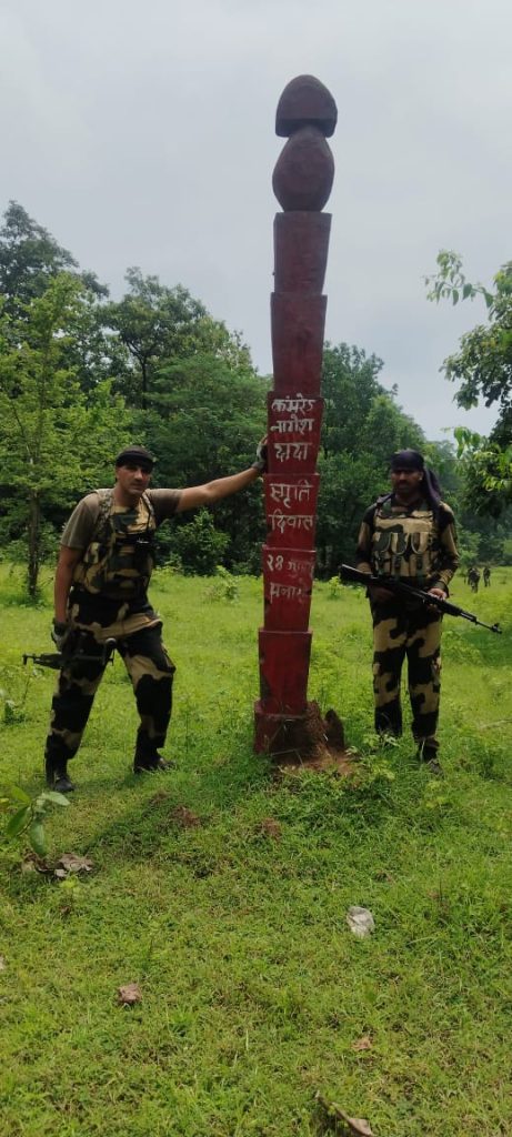 सुशील सलाम, कांकेर. कांकेर जिले में नक्सल मुक्त भारत के संकल्प को साकार करने की दिशा में 47 बटालियन बीएसएफ पखांजूर के जवानों ने एक और बड़ी कार्रवाई की है. जवानों ने भारी बारिश और दुर्गम रास्तों की चुनौती के बीच परतापुर थाना क्षेत्र के गांव वाट्टेकल व परालमस्पी के घने जंगलों में नक्सलियों के बनाए गए लगभग 14 फीट ऊंचे स्मारक को ध्वस्त कर दिया गया है.