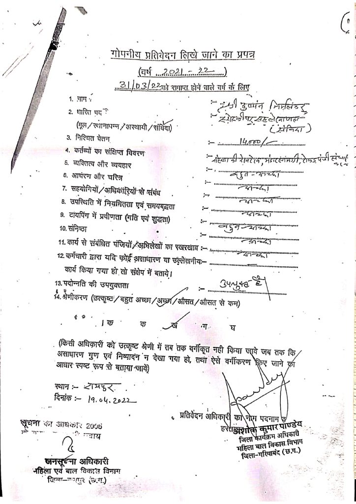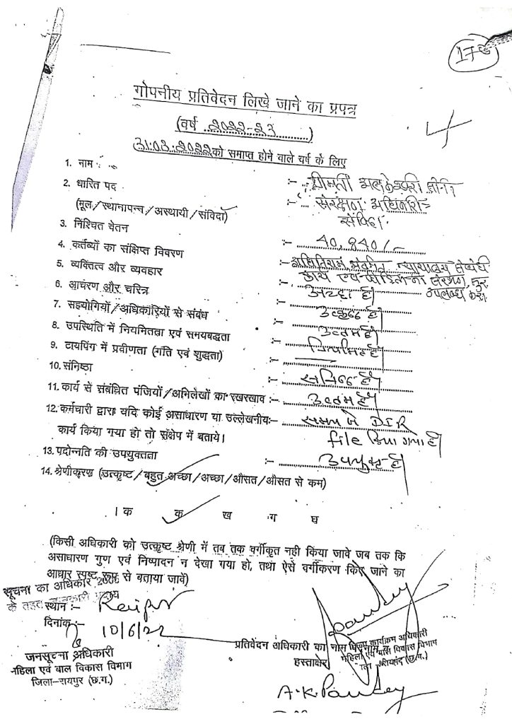 उच्च न्यायालय छत्तीसगढ़ बिलासपुर द्वारा पारित किये गये आदेश के अनुपालन में त्वरित कार्यवाही करते हुए सक्षम प्राधिकृत अधिकारी के समक्ष प्रकरण को प्रस्तुत किया जाना था. परंतु जिला कार्यक्रम अधिकारी, महिला एवं बाल विकास विभाग, रायपुर श्रीमती निशा मिश्रा के हस्ताक्षर से सक्षम प्राधिकृत अधिकारी को अवगत कराये बगैर ही उक्त 8 कर्मियों को वेतन भुगतान किया गया. आरटीआई से निकाले गए सारे दस्तावेज आरटीआई कार्यकर्ता आशीष देव सोनी ने लल्लूराम डॉट कॉम को उपलब्ध कराएं है.