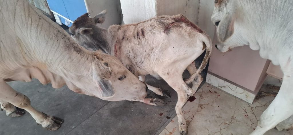 घटना के बाद बछड़े को दूध पिलाती की मां. बछड़े के उपचार के दौरान भी मां साथ खड़ी रही.