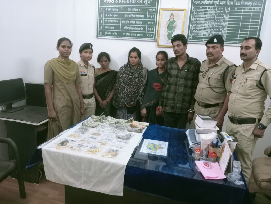 CG News: बिलासपुर. सराफा दुकान में खरीदारी के बहाने लगातार चोरी की वारदातों को अंजाम देने वाले गिरोह पर बिलासपुर पुलिस ने बड़ी कार्रवाई की है. पुलिस अधीक्षक रजनेश सिंह (भा.पु.से.) के मार्गदर्शन में थाना बिल्हा और एसीसीयू की संयुक्त टीम ने चार आरोपियों को गिरफ्तार करते हुए 26 लाख रुपये से अधिक कीमती माल बरामद किया है. इस कार्रवाई में थाना प्रभारी बिल्हा निरीक्षक उमेश कुमार साहू, एसीसीयू निरीक्षक अजहर, और उनकी टीम के बलराम विश्वकर्मा, संतोष मरकाम, सुमन कश्यप, अविनाश कश्यप, बोधू कुम्हार, महिला आरक्षक जिवंती भगत और सुनीता पाटले ने उल्लेखनीय भूमिका निभाई.
