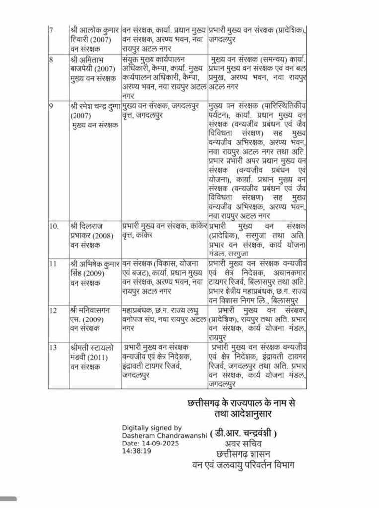 रायपुर. राज्य सरकार ने वन विभाग में बड़े पैमाने पर फेरबदल किया है. कई मुख्य वन संरक्षकों (CCF) एवं वन सरंक्षकों को इधर से उधर किया गया है. इसका आदेश वन विभाग के अवर सचिव डीआर चंद्रवंशी ने जारी किया है.