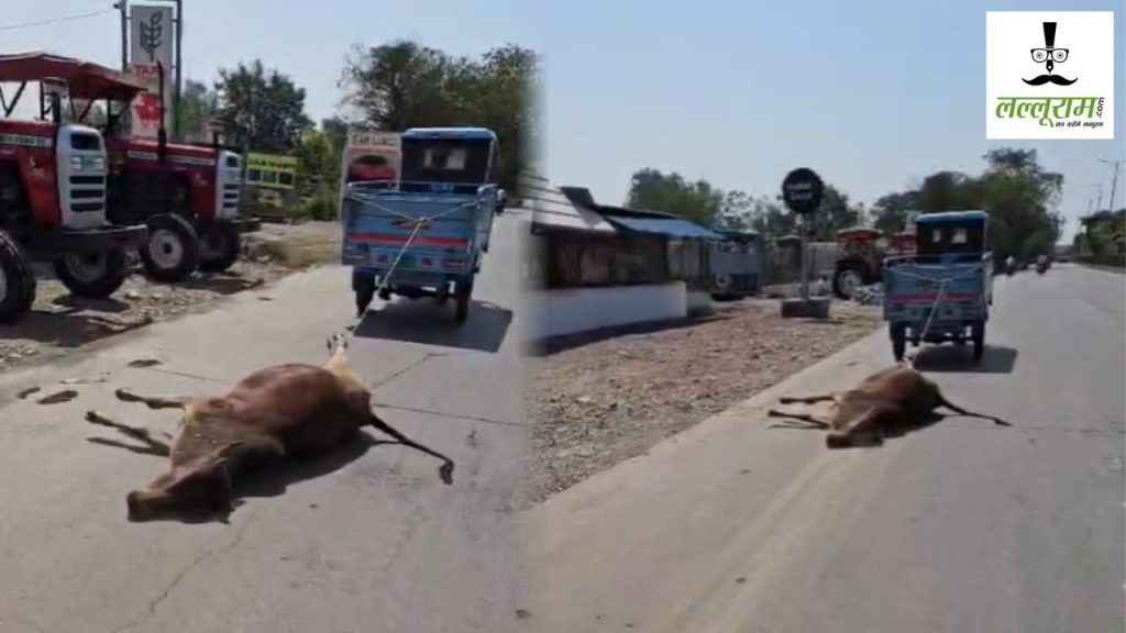 जानकारी के मुताबिक, सड़क किनारे पड़ी मृत गाय को हटाने के लिए काफी देर तक कोई जिम्मेदार अमला मौके पर नहीं पहुंचा. वायरल वीडियो में एक इलेक्ट्रिक ऑटो में रस्सी से बांधकर मृत गाय को सड़क पर घसीटा जा रहा है. सोशल मीडिया पर यह वीडियो तेजी से वायरल हो रहा है. सवाल है कि क्या मृत गाय के अंतिम संस्कार के लिए भी प्रशासन संवेदनशील नहीं है.