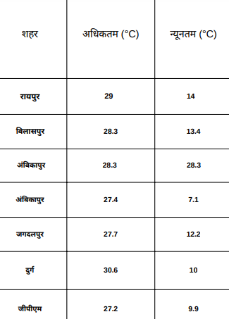 CG Weather News : रायपुर. छत्तीसगढ़ में अगले दो दिनों तक न्यूनतम तापमान में गिरावट होगी, जिससे ठंडी और बढे़गी . प्रदेश के कुछ इलाकों में सुबह के समय कोहरा छाए रहेगा. अगले दो दिनों के बाद न्यूनतम तापमान में मामूली बढ़त होने की संभावना है. सोमवार को प्रदेश में सबसे ज्यादा तापमान दुर्ग में 30.6 डिग्री रहा. वहीं सबसे ठंडा अंबिकापुर रहा, जहां 7.1 डिग्री न्यून्यतम तापमान दर्ज किया गया है.