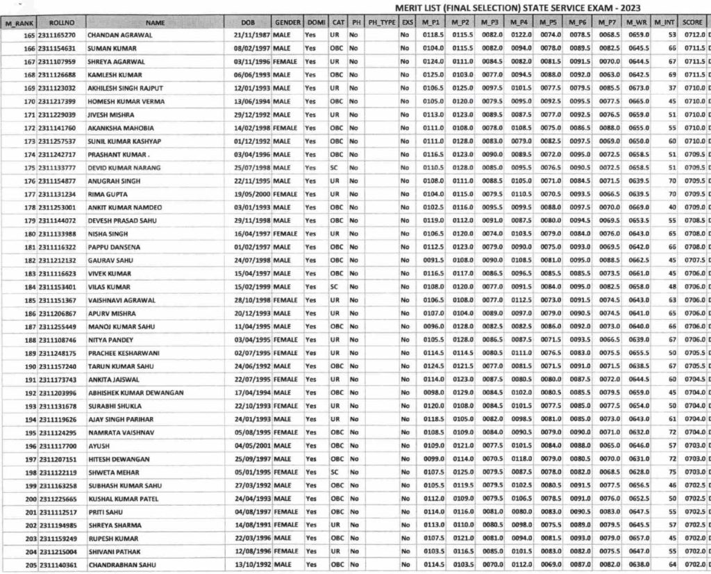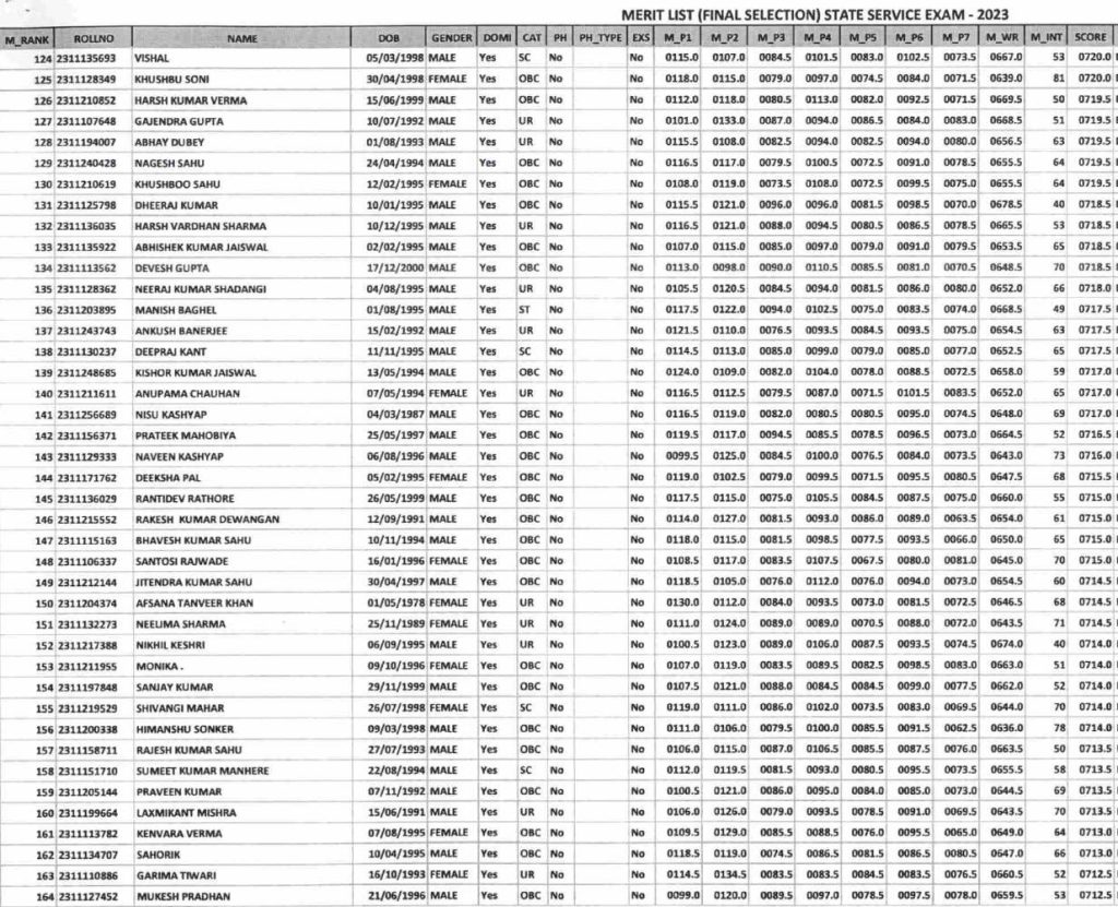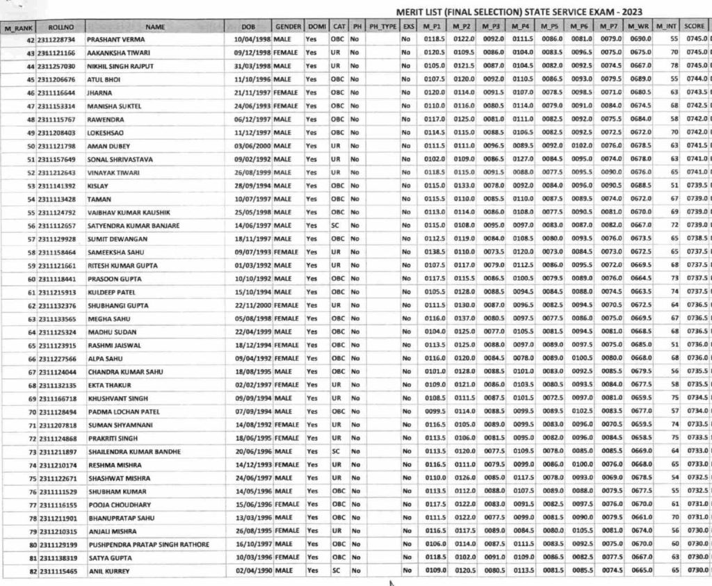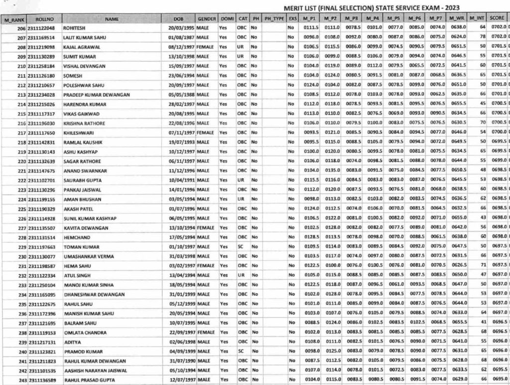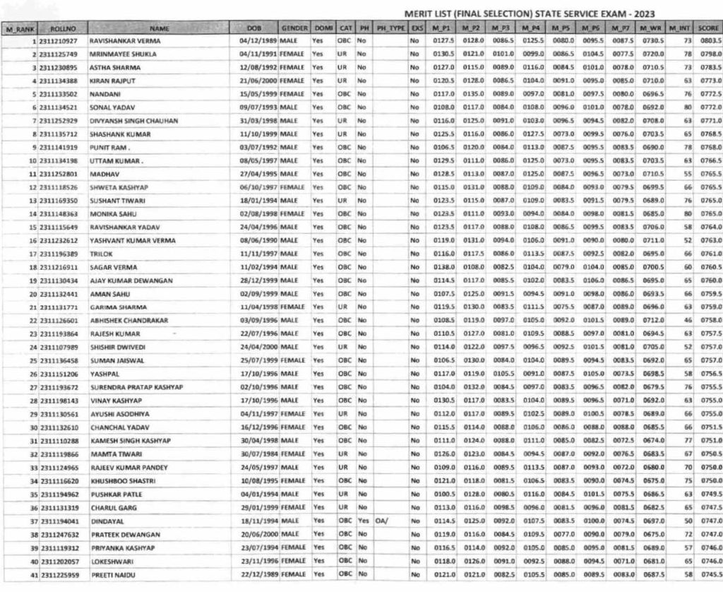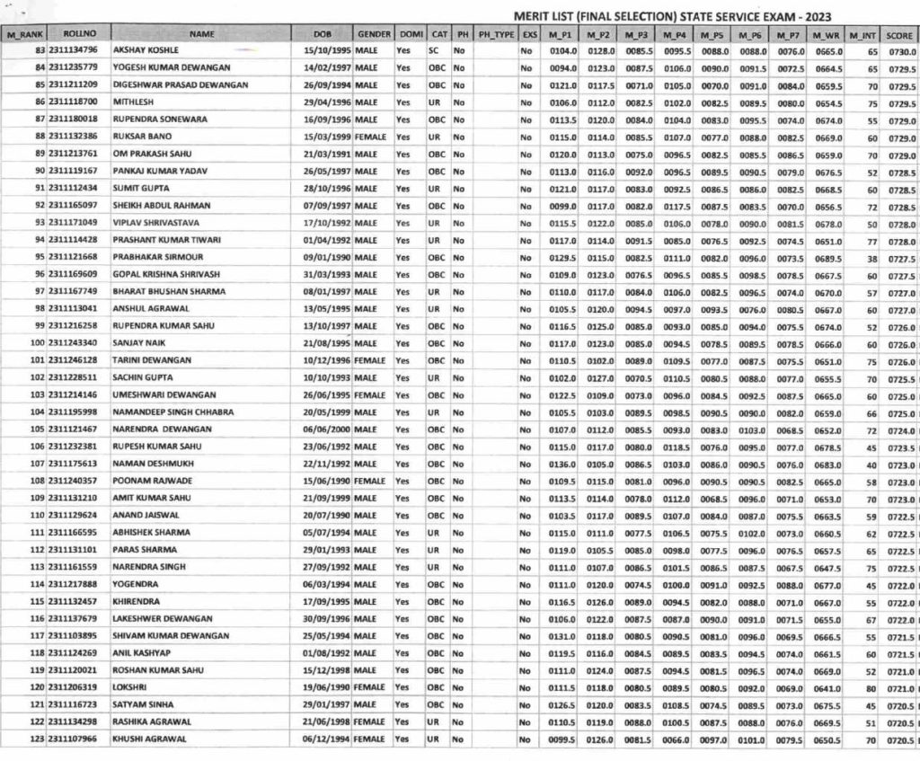 इन अभ्यर्थियों ने टॉप 10 में बनाई जगह (CGPSC 2023 Result)