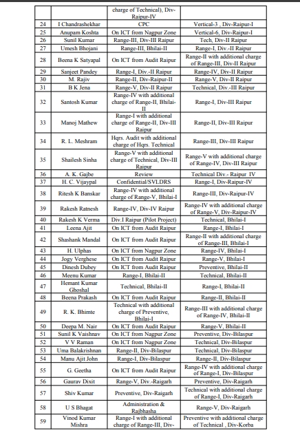 जारी आदेश के अनुसार, कुल 62 सुपरिटेंडेंट और 61 इंस्पेक्टर का तबादला हुआ है।