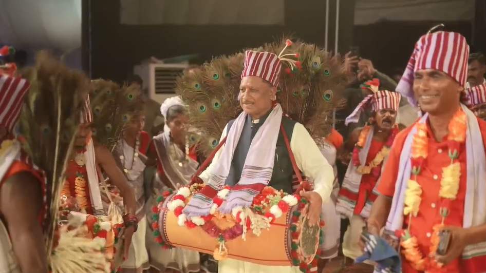 रायगढ़। गणेश चतुर्थी के अवसर पर छत्तीसगढ़ के रायगढ़ जिले के रामलीला मैदान में 39वें चक्रधर समारोह का भव्य शुभारंभ हुआ. इस समारोह का उद्घाटन मुख्यमंत्री विष्णुदेव साय ने किया. वहीं प्रसिद्ध अभिनेत्री और सांसद हेमा मालिनी और उनकी टीम ने भरतनाट्यम पर रासबिहारी नृत्य नाटिका की शानदार प्रस्तुति दी. नृत्य नाटिका रासबिहारी की मनमोहक प्रस्तुति से कलाप्रेमी और दर्शक मंत्रमुग्ध कर दिया. वहीं समारोह में अपने गृह ग्राम बगिया के कर्मा नर्तकों को मांदर की थाप पर कर्मा नृत्य करते देख मुख्यमंत्री विष्णुदेव साय स्वयं को नहीं रोक सके और मुख्य मंच पर हाथ में मांदर थामे हुए जमकर थिरके. इस दौरान उनके साथ कैबिनेट मंत्री रामविचार नेताम और ओपी चौधरी ने भी कर्मा नृत्य किया.