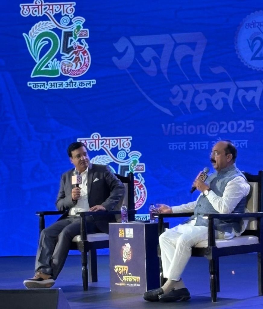 छत्तीसगढ़ राज्य स्थापना के रजत जयंती वर्ष पर NEWS 24 MP-CG और लल्लूराम डॉट कॉम के ‘रजत सम्मेलन – विजन @ 2025 : कल, आज और कल’ कार्यक्रम का आगाज हो गया है. यह कार्यक्रम राजधानी रायपुर में आयोजित किया जा रहा है, जिसकी विधिवत शुरुआत उपमुख्यमंत्री अरुण साव, चेयरमैन नमित जैन, डायरेक्टर अमित जैन और एडिटोरियल एडिटर मनोज बघेल ने दीप प्रज्वलन कर की. दिनभर चलने वाले इस कार्यक्रम में कई प्रबुद्धजनों के साथ छत्तीसगढ़ के नए सवेरे पर सार्थक परिचर्चा होगी.