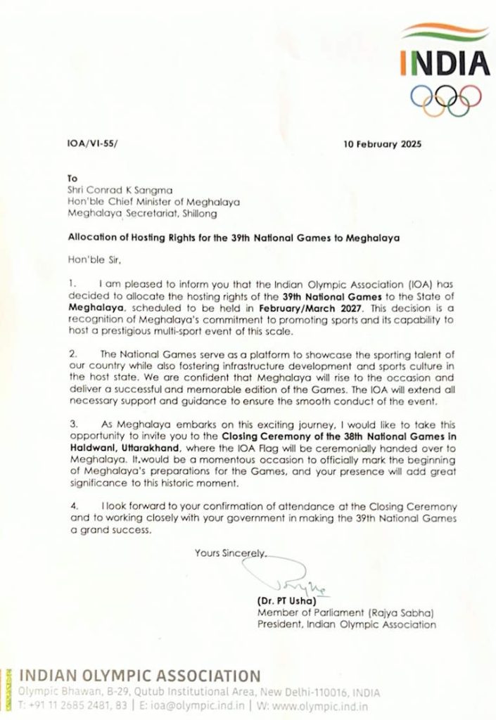 मेघालय ओलंपिक एसोसिएशन ने नेशनल गेम्स के मेजबानी सौंपे जाने की जानकारी भारतीय ओलंपिक संघ की ओर से जारी पत्र को अपने ऑफिशल वेबसाइट पर पोस्ट कर दी है. छत्तीसगढ़ बीते 15 सालों से नेशनल गेम्स की मेजबानी का इंतजार कर रहा है. आयोजन के लिए छत्तीसगढ़ ओलंपिक संघ ने 2010 में IOA को 2.5 करोड रुपए रॉयल्टी मनी के तौर पर दिए थे. इसके बावजूद गोवा, गुजरात और उत्तराखंड को मेजबानी दी गई.