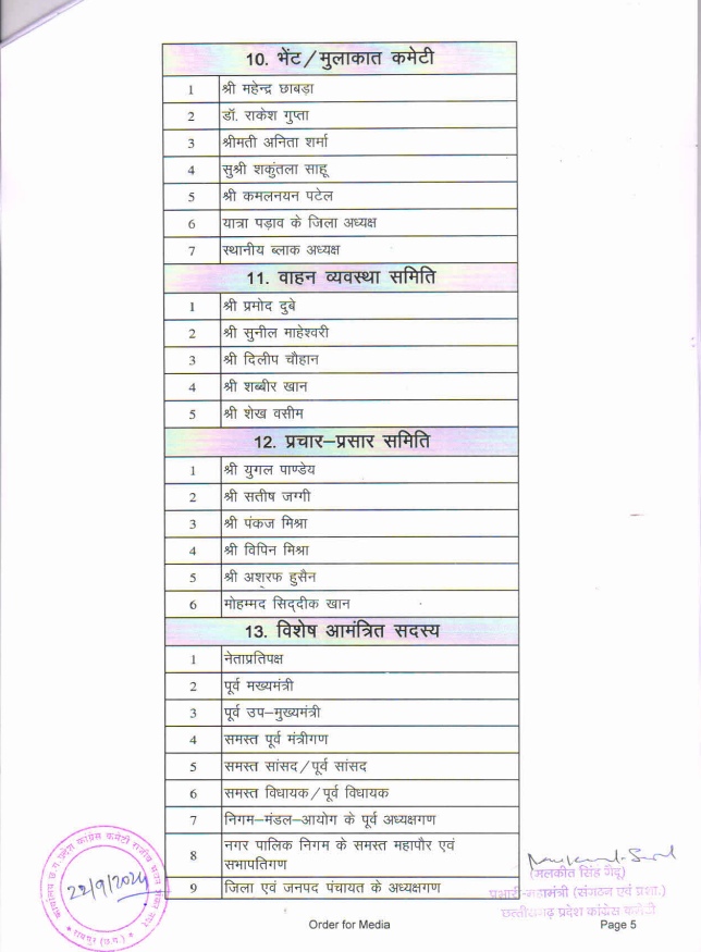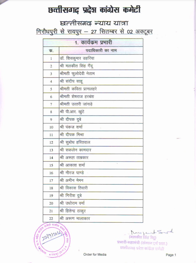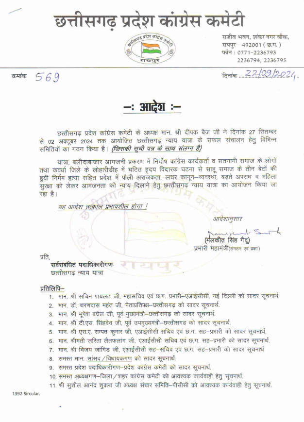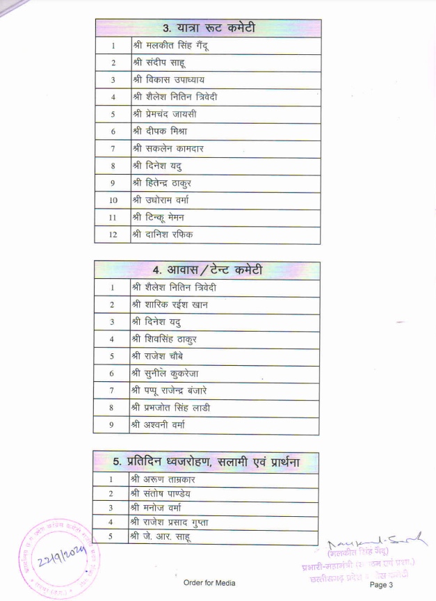 छत्तीसगढ़ न्याय यात्रा के लिए गठित समितियां