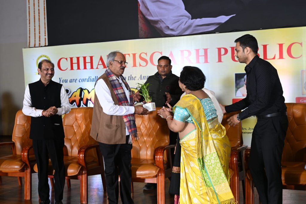 रायपुर. राजधानी रायपुर के टाटीबंध स्थित छत्तीसगढ़ पब्लिक स्कूल का वार्षिकोत्सव और पुरस्कार वितरण समारोह ‘संवेदना भावों की अभिव्यक्ति 2025’ पं. दीनदयाल उपाध्याय सभागार में 4 जनवरी यानी रविवार को बड़े ही हर्षोल्लास और गरिमामय वातावरण में मनाया गया. समारोह का शुभारंभ मुख्य अतिथि रायपुर लोकसभा सांसद बृजमोहन अग्रवाल, रायपुर उत्तर विधायक पुरंदर मिश्रा, शाला संस्थापिका और महिला नागरिक सहकारी बैंक की अध्यक्ष मती सत्यबाला अग्रवाल, शाला संचालक संजय अग्रवाल और प्रबंधिका मती ज्योति अग्रवाल, सूर्या संस्कार फाउंडेशन के संचालक सिद्धार्थ अग्रवाल, शाला कार्यकारी निर्देशक मती मृणाली अग्रवाल, प्राचार्य राकेश चतुर्वेदी द्वारा विधिवत रूप से माँ सरस्वती के समक्ष दीप प्रज्ज्वलन और सरस्वती वंदना के साथ किया गया. इसके पश्चात विद्यालय के छात्र-छात्राओं द्वारा प्रस्तुत मानवीय संवेदनाओं से ओत-प्रोत स्वागत गीत ने समारोह को गरिमामय वातावरण प्रदान किया. इस अवसर पर विद्यार्थियों की मनमोहक सांस्कृतिक कार्यक्रमों की प्रस्तुति ने मंच पर इंद्रधनुषी रंगों की छटा बिखेरकर वहां उपस्थित अभिभावकों और अतिथियों का मन मोह लिया.