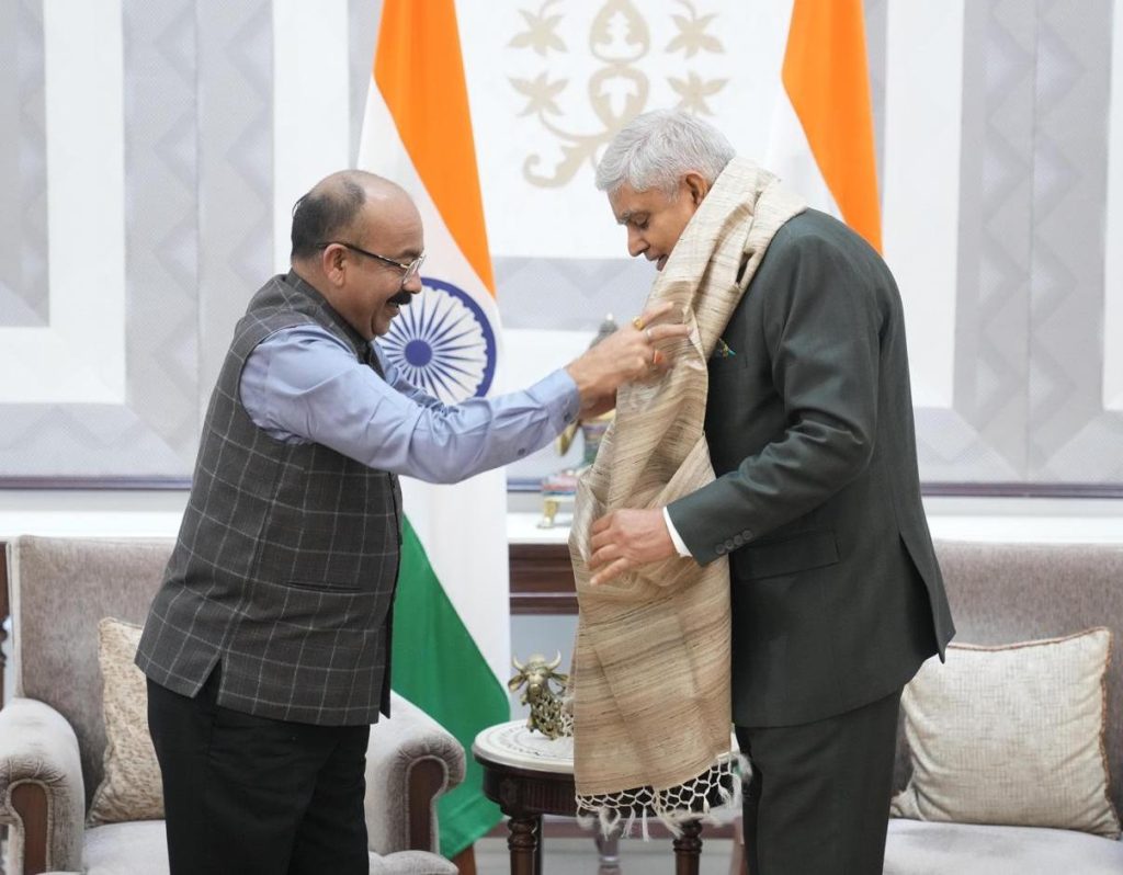 Chhattisgarh Rajyotsava: रायपुर। छत्तीसगढ़ के उप मुख्यमंत्री अरुण साव ने आज अपने एक दिवसीय नई दिल्ली प्रवास के दौरान देश के उप राष्ट्रपति जगदीप धनखड़ से भेंट की. उन्होंने राज्य शासन की ओर से उप राष्ट्रपति को राज्योत्सव (Rajyotsava) के समापन और राज्य अलंकरण समारोह में मुख्य अतिथि के रूप में शामिल होने के लिए आमंत्रित किया. नया रायपुर, अटल नगर में आयोजित तीन दिवसीय राज्योत्सव का समापन और राज्य अलंकरण समारोह 6 नवंबर को होगा.