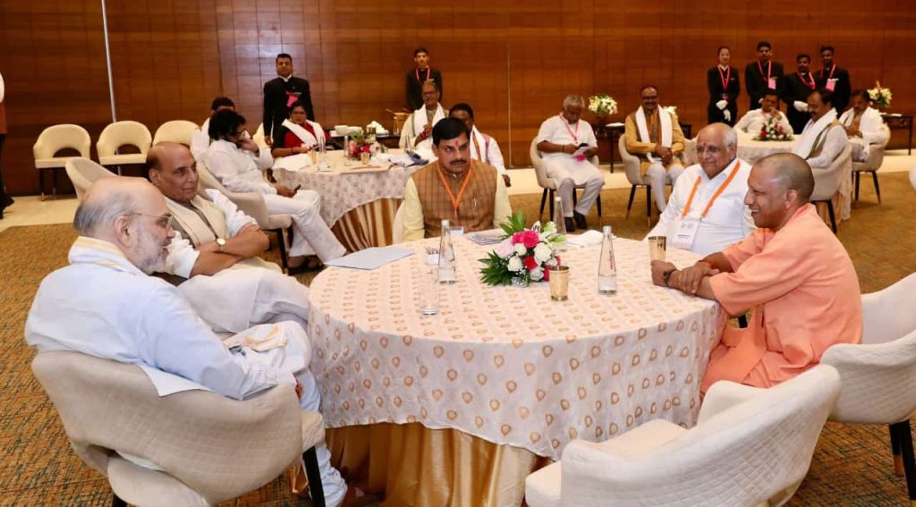 गुरुवार को चंडीगढ़ में प्रधानमंत्री नरेंद्र मोदी की अध्यक्षता में सीएम कॉन्क्लेव का आयोजन किया गया। जिसमें एमपी के सीएम डॉ मोहन यादव ने शिरकत की। इसके अलावा बीजेपी शासित राज्यों के मुख्यमंत्री और उप मुख्यमंत्री भी शामिल हुए।