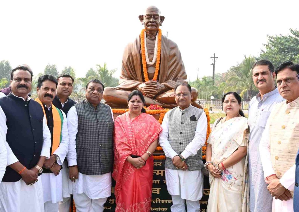 मुख्यमंत्री विष्णुदेव साय ने कलेक्टोरेट परिसर में राष्ट्रपिता महात्मा गांधी की प्रतिमा का अनावरण किया। मुख्यमंत्री ने इस अवसर पर कलेक्टर कार्यालय परिसर पर महात्मा गांधी की प्रतिमा के समीप चरखा भी चलाया। इसके साथ ही उन्होंने महात्मा गांधी की प्रतिमा के समीप एक पेड़ मां के नाम अभियान के तहत रूद्राक्ष के पौधे का रोपण किया।