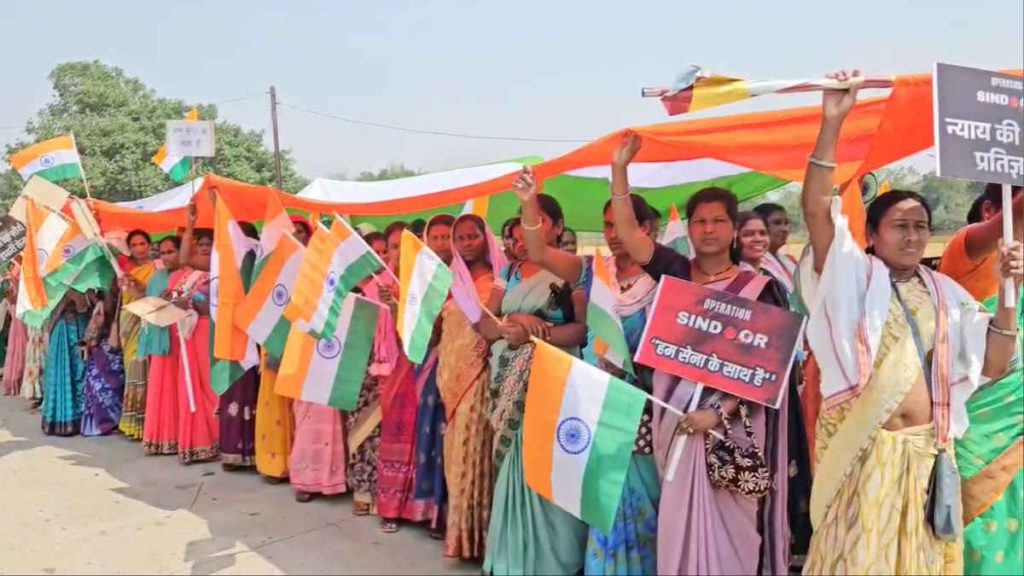 सीएम साय ने कहा कि जिस प्रकार पड़ोसी देश पाकिस्तान ने हमारे देश के महिला पर्यटकों की मांग की सिंदूर उजाड़ा है, उसी प्रकार हमारे देश के सैनिक ने पाकिस्तान के घर में घुसकर ऑपरेशन सिंदूर के तहत पाकिस्तान के आतंकी ठिकानों तबाह किया है. हमारे सैनिक धर्म, जाति और सम्प्रदाय से उठकर एक हैं. उन्होंने आगामी दिनों में नगरीय, व पंचायत स्तर पर तिरंगा यात्रा निकालने की बात कही.