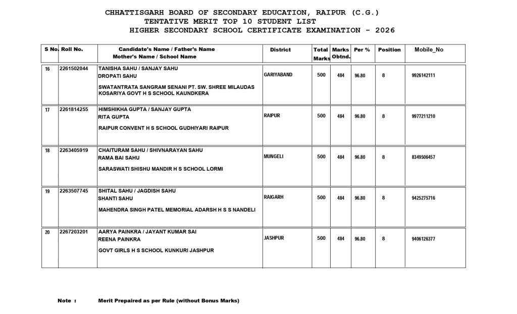 Chhattisgarh Class 12th Result: रायपुर। मुख्यमंत्री विष्णु देव साय ने 12वीं बोर्ड की परीक्षा देने वाले करीबन ढाई लाख छात्रों के इंतजार को खत्म करते हुए परीक्षा परिणाम जारी किया। जिज्ञासु वर्मा ने 98 प्रतिशत अंक हासिल कर पहला स्थान हासिल किया है।